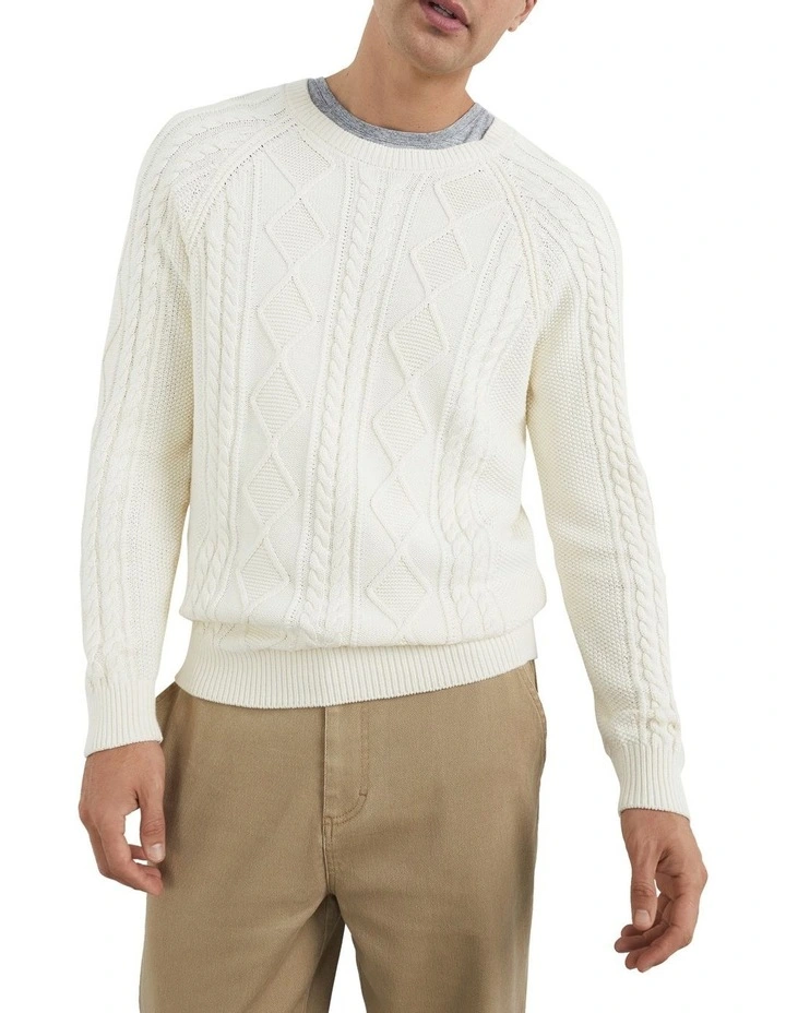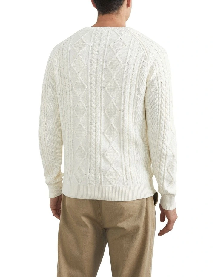 Our Cable Knit Sweater brings a classic design to the modern era. Featuring a relaxed fit, cable knit detailing and a raglan sleeve, this sweater is made from a stretchy cotton knit fabric. Pair with our Cropped Straight Leg Pant and Field Jacket. Our model is 188cm tall and wears a size M