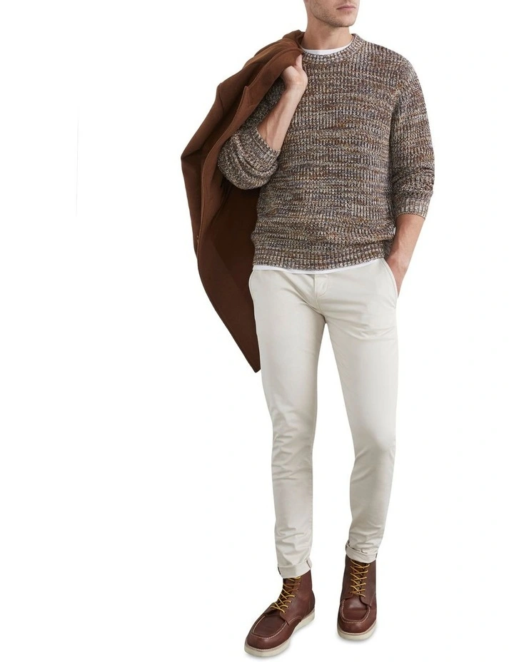 Add a versatile winter style to your wardrobe with the Mixed Crew Knit. This 100% cotton knit features a chunky ribbed fabric design, crew neck, regular fit and comes in a choice of two colourways. Wear with our Classic Crew Neck T-Shirt, Slim Chino Pant, Casual Coat, Ribbed Beanie and Sean Chukka boot. Our model is 188cm tall and wears a size M.