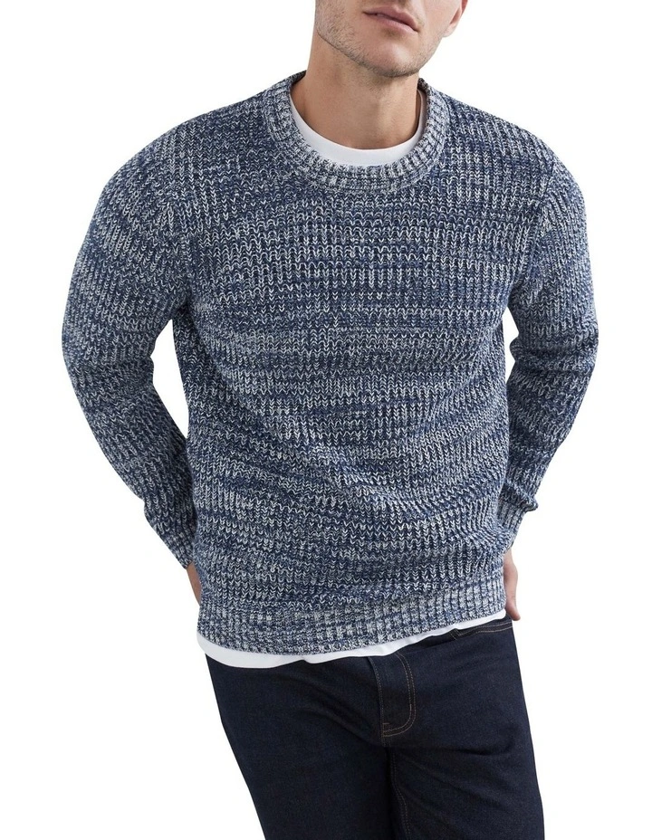 Add a versatile winter style to your wardrobe with the Mixed Crew Knit. This 100% cotton knit features a chunky ribbed fabric design, crew neck, regular fit and comes in a choice of two colourways. Wear with our Classic Crew Neck T-Shirt, Slim Chino Pant, Casual Coat, Ribbed Beanie and Sean Chukka boot. Our model is 188cm tall and wears a size M.
