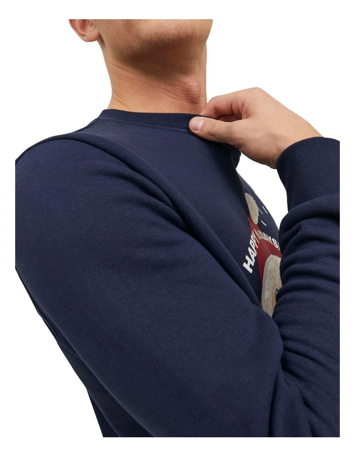 Best Sale 🧨 Jack & Jones Toon Crew Neck Xmas Sweat In Navy 🎁