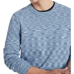 Using multi-tonal space dye yarn to create a rich dappled blue effect, this knit sweater creates an easy-wearing mid-weight layering piece, perfect for cooler days. Made from pure cotton, the sweater flatters within a regular fit, finished with chunky rib trim at the crew neckline, long sleeve cuffs, and straight body hem.