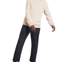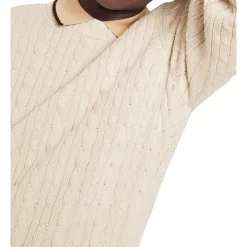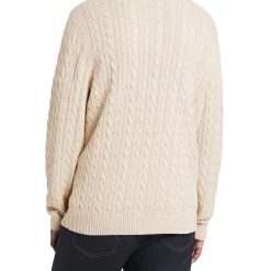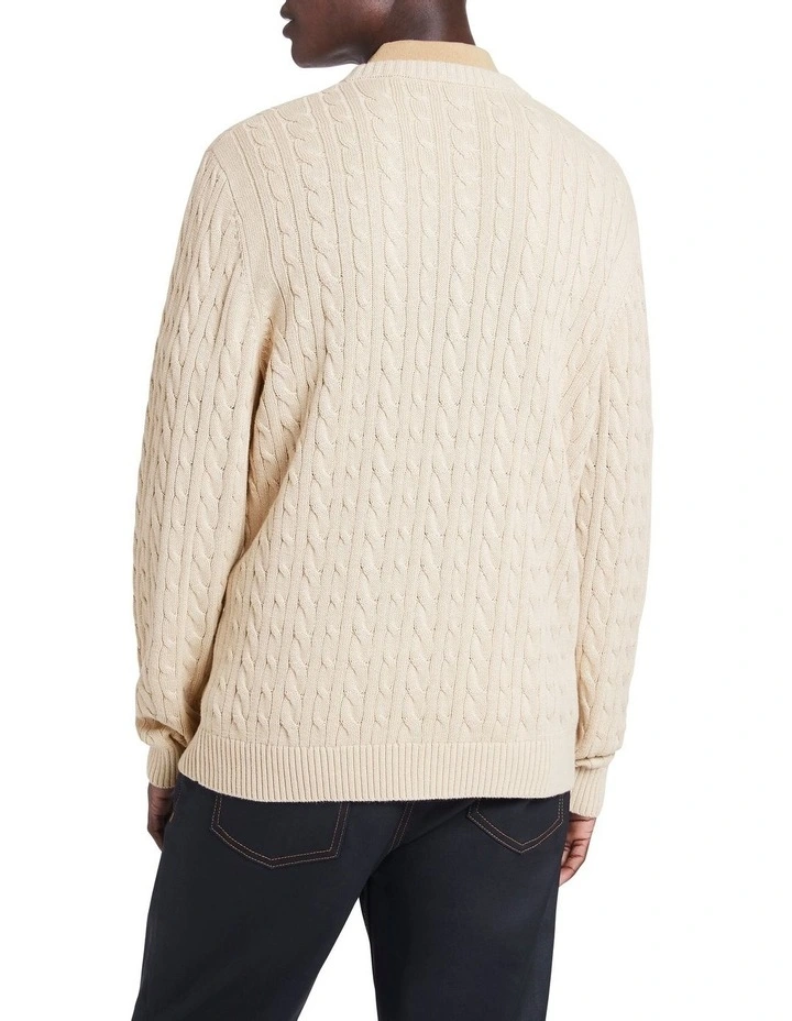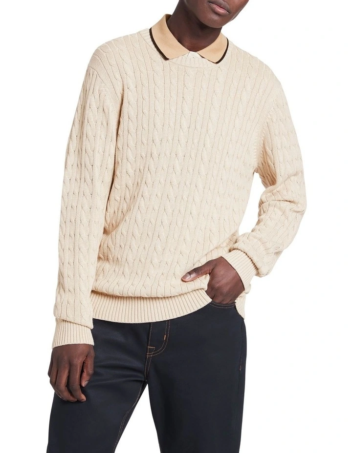 Richly textured, this gorgeously soft knit sweater reveals cable stitch detailing through the body and sleeves, perfectly accentuated by chunky rib trim at the neck, cuffs and body hem. Designed for easy pairing, the sweater is offered in a neutral biscuit colouring, creating a regular fit throughout and completed by flattering crew shaping at the neckline.