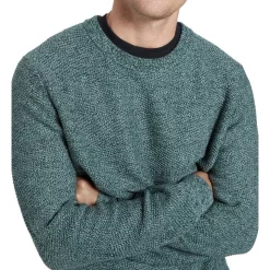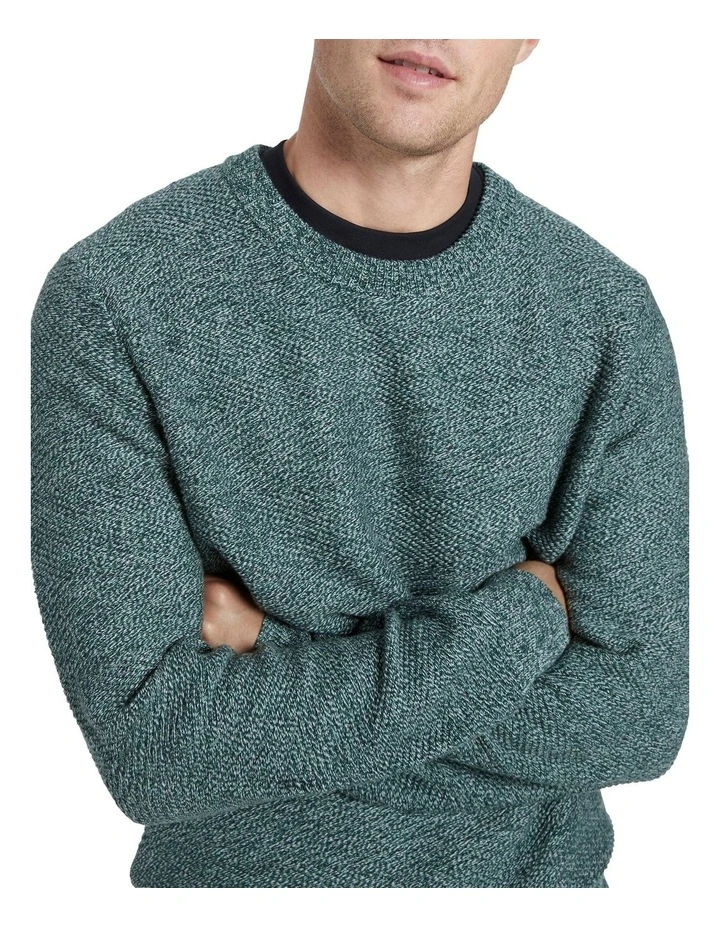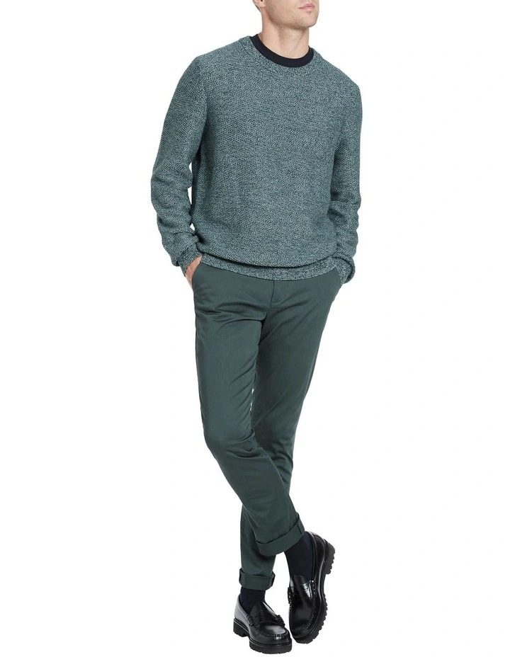 Wrapping you up in a softly textured knit, this sweater reveals a dark aqua colouring, made from a cotton blend yarn utilising a criss-cross knit stitch. Offering a regular fit through both the body and long sleeves, the sweater is further accentuated by rib trim detailing at the crew neckline, sleeve cuffs and straight body hem.