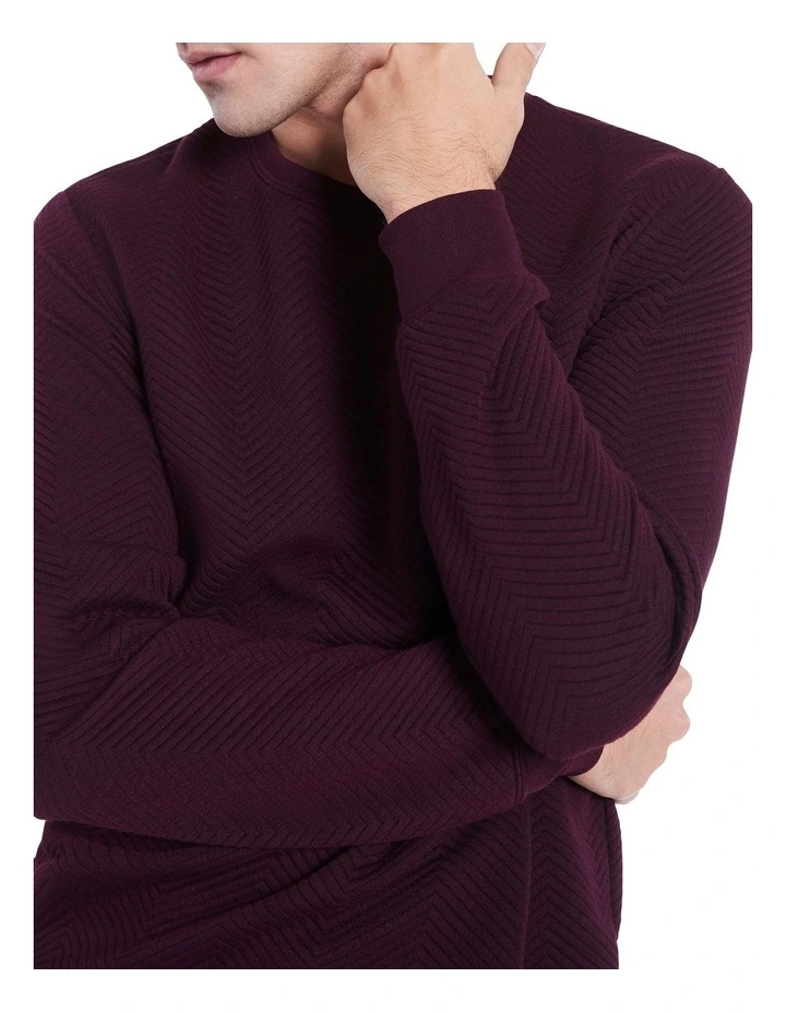 Revealing a beautifully rich shade of deep purple, this sweater really dials up the interest using a textured herringbone design through both the body and long sleeves. Super soft against the skin, the sweater is made fromΒ cotton and polyester, which works to create a regular fit finished with rib trim detailing at the crew neckline, sleeve cuffs and body hem.