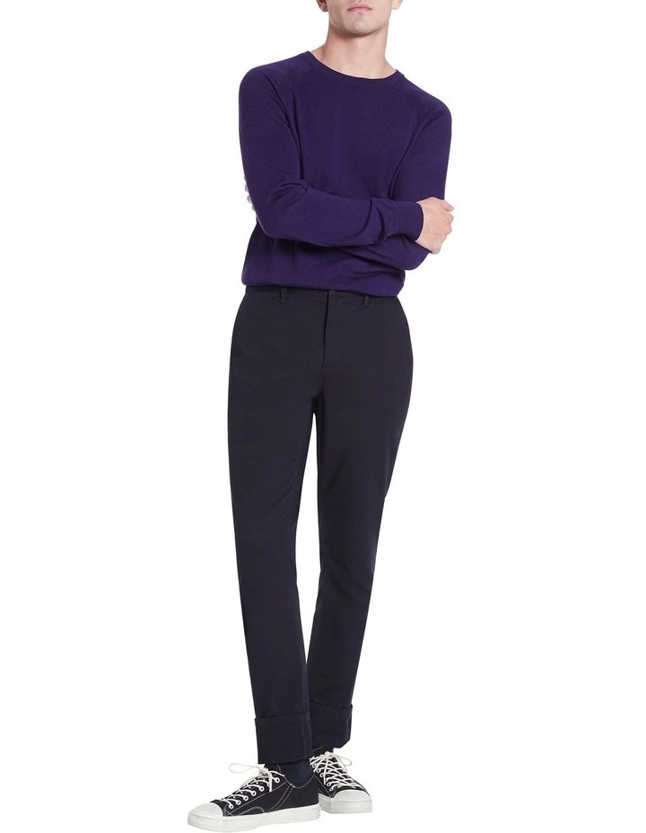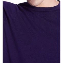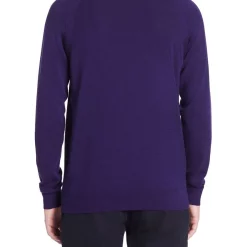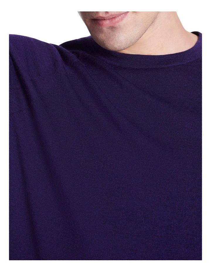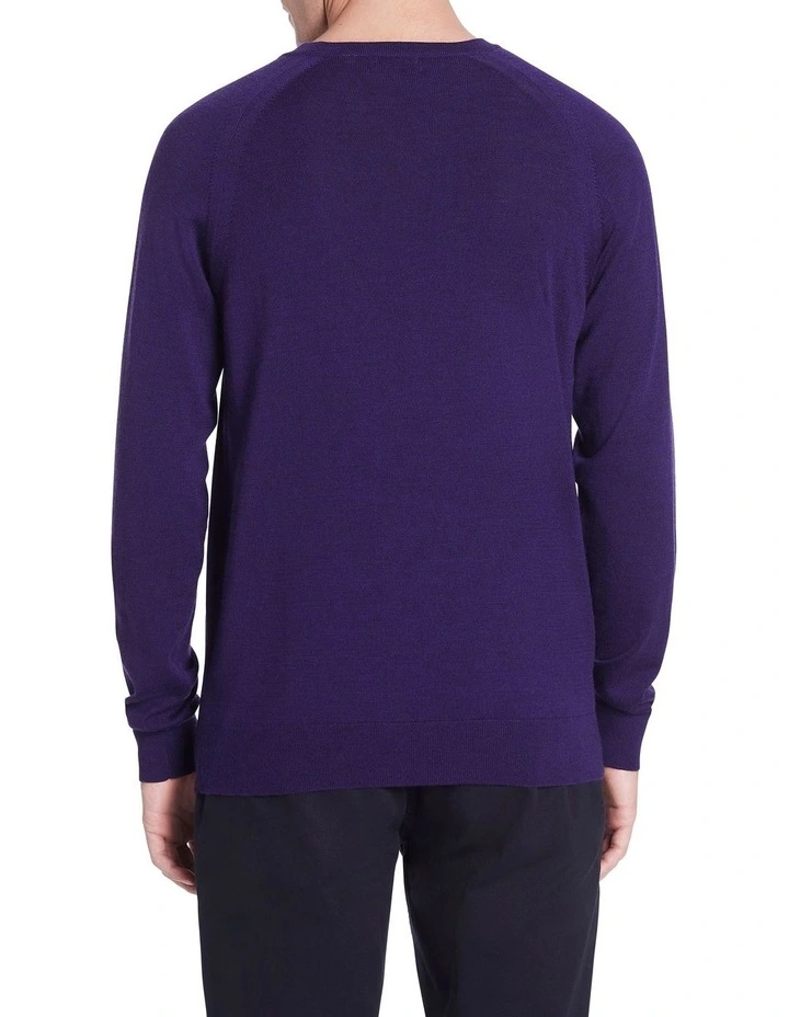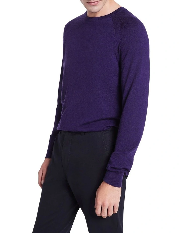 Creating a lightweight look made from pure Australian new Merino wool, this long sleeve knit sweater is so soft, youll want to wear it with everything. Offered in a gorgeously rich shade of deep purple, the sweater shows off a regular fit with raglan shaping at the shoulders, finished with fine rib trim at the crew neckline, cuffs and body hem.