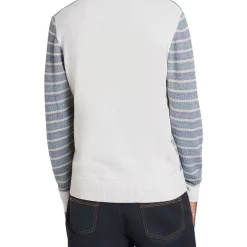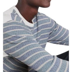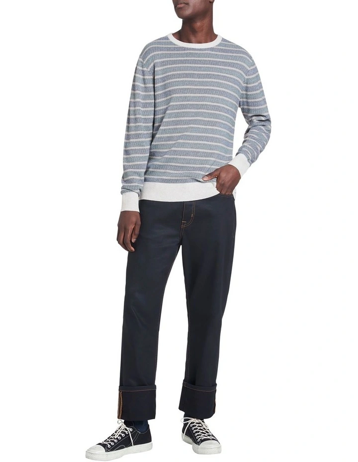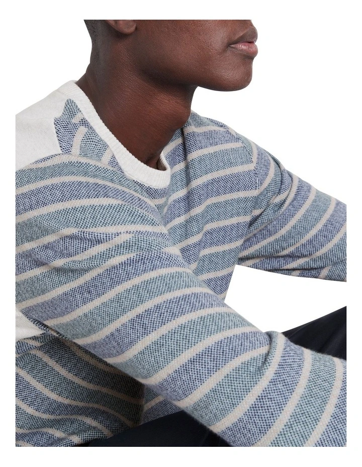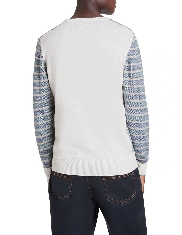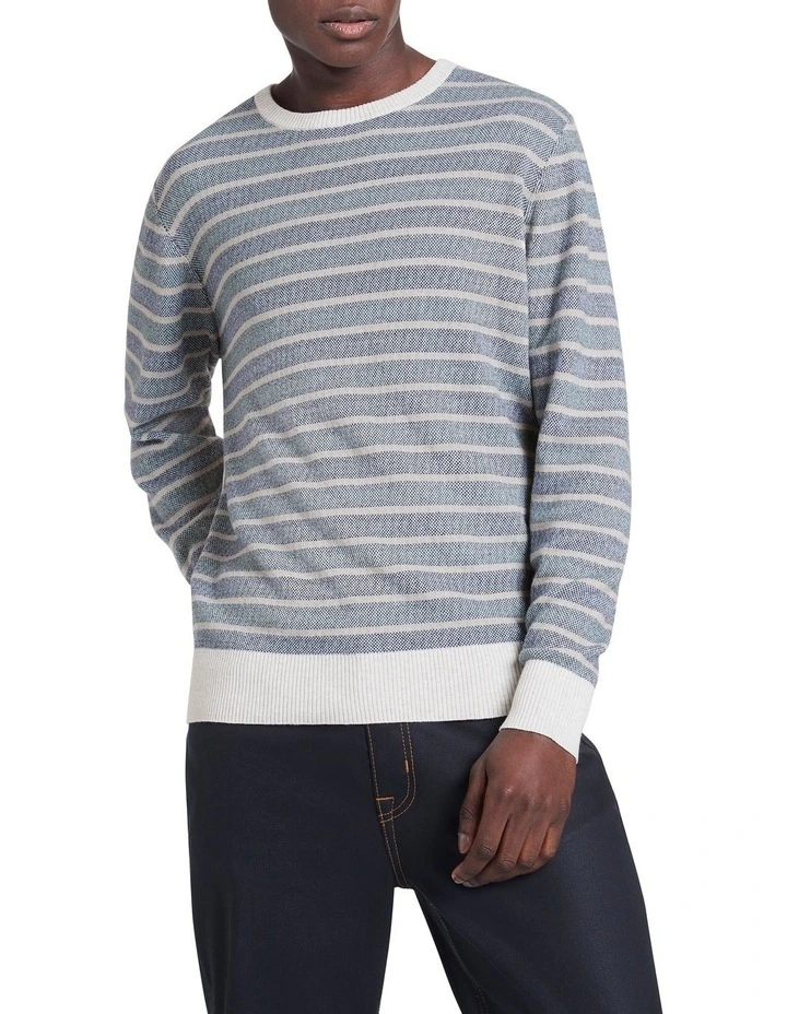 Revealing muted tones within a multi-tonal horizontal stripe, this long sleeve knit sweater creates a lightweight look, made from beautifully soft, pure cotton yarn. Flattering through a regular fit, the sweater features a printed stripe through the front and sleeves, accentuated by a plain ivory back and ivory rib trim at the crew neckline, sleeve cuffs and body hem.