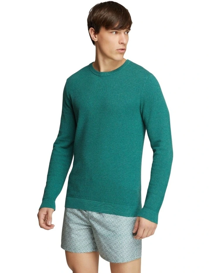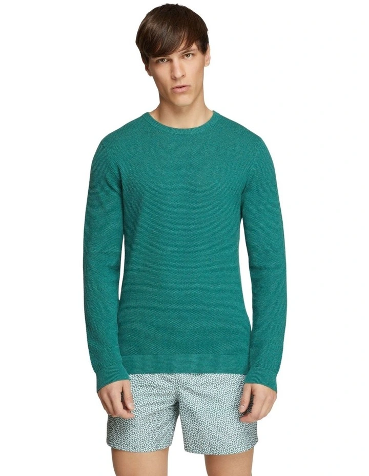 Get the basics right with the Arlo Textured Cotton Crew Neck Knit. This versatile knit is crafted from 100% cotton in a textured weave and cut in a flattering slim fit. It features a crew neckline and ribbed trims. Team it with chino shorts and crisp white sneakers for a smart weekend look. Our model is wearing a size AU medium knit and usually takes a medium. He is 185cm (61.75) tall with a 96.52cm (38) chest and 81cm (32) waist.