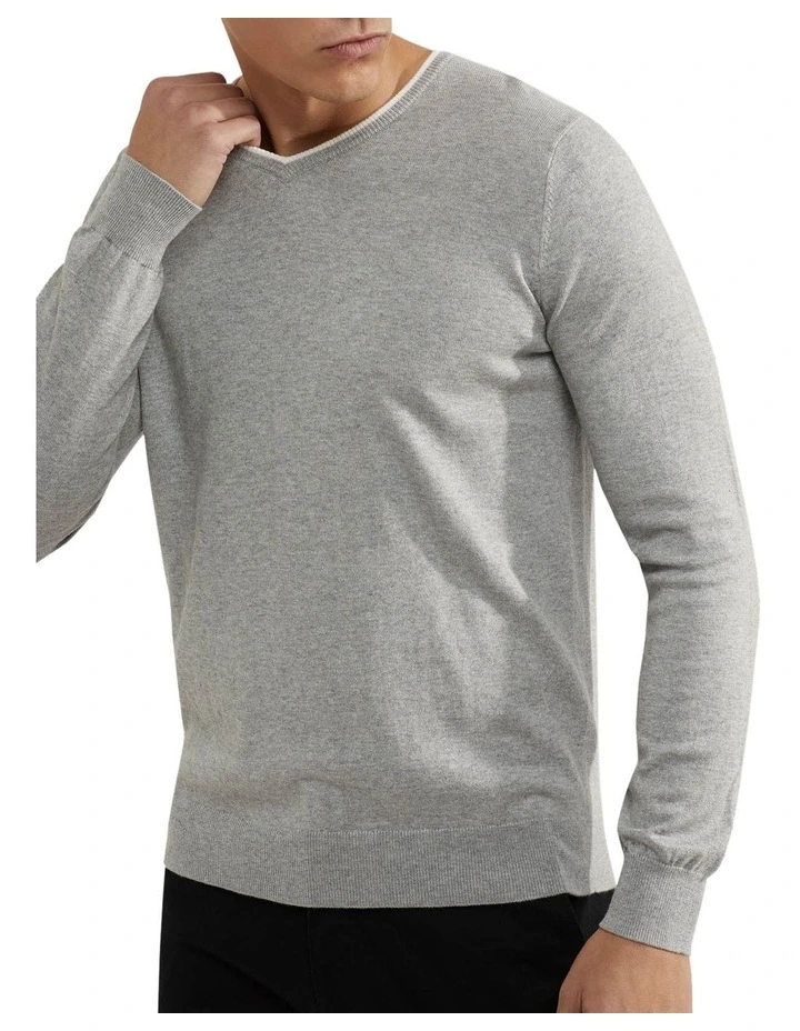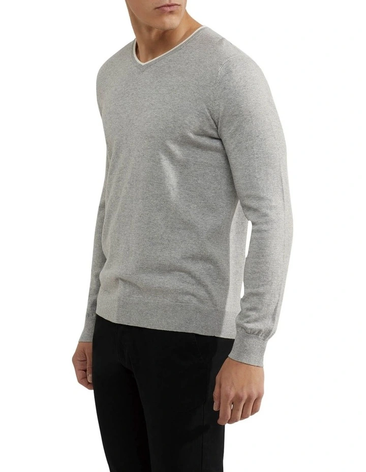 The Lenny Tipping V-Neck Cashmere Blend Pullover is a versatile and comfortable choice. This classic v-neck jumper is made from a super soft cotton and cashmere blend and features a contrast stripe on the neckline, and ribbed trims. Wear it with chinos and sneakers for a smart yet relaxed look.- V-neckline
