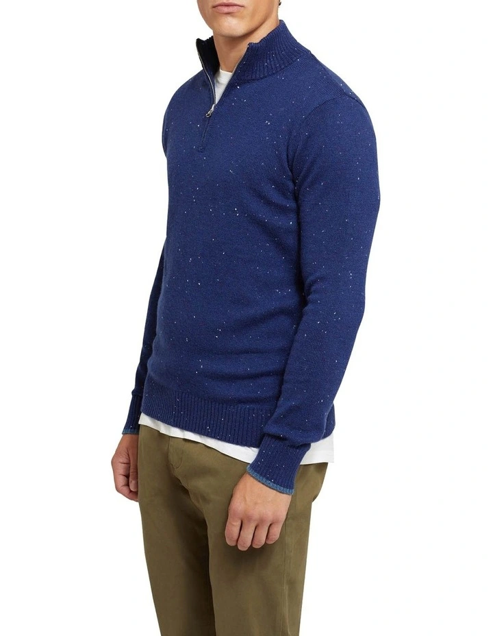 The Micky Donegal Zip Collar Knit is a timeless winter style. This mens knit is crafted from Donegal weave with subtle coloured specks. It is cut in a slim fit and features a suave zip collar with a high neckline and contrast cuff trims. Team with jeans and sneakers to complete the look.