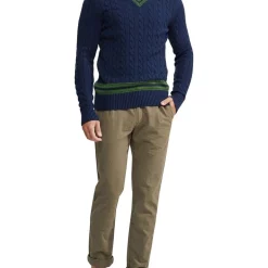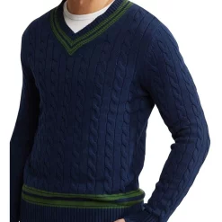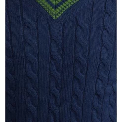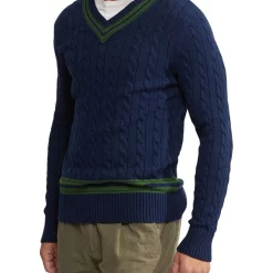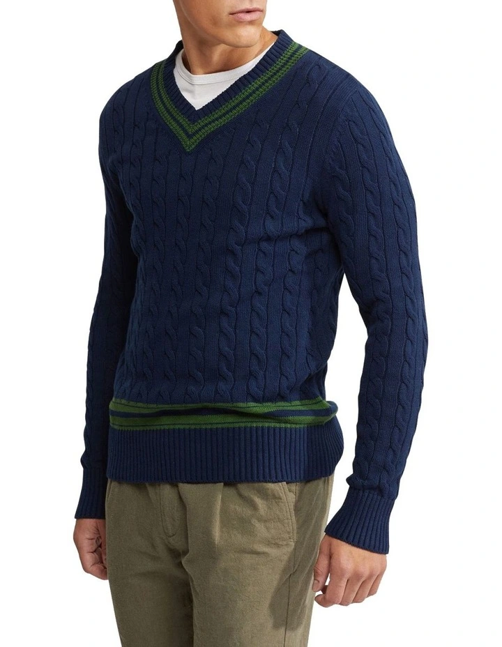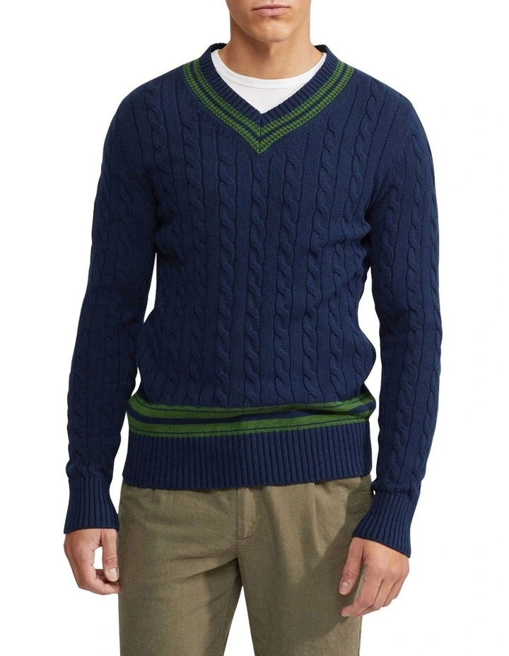 Vintage cool, the Richie Cricket Knit is a marvellous look. This regular fit knit is crafted from 100% cotton and features a stylish vertical cable knit pattern, tipping stripes on the neckline and waist, and a v neckline. Team it with some linen pants and sandals for a relaxed yet dapper look.