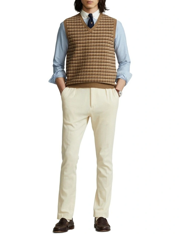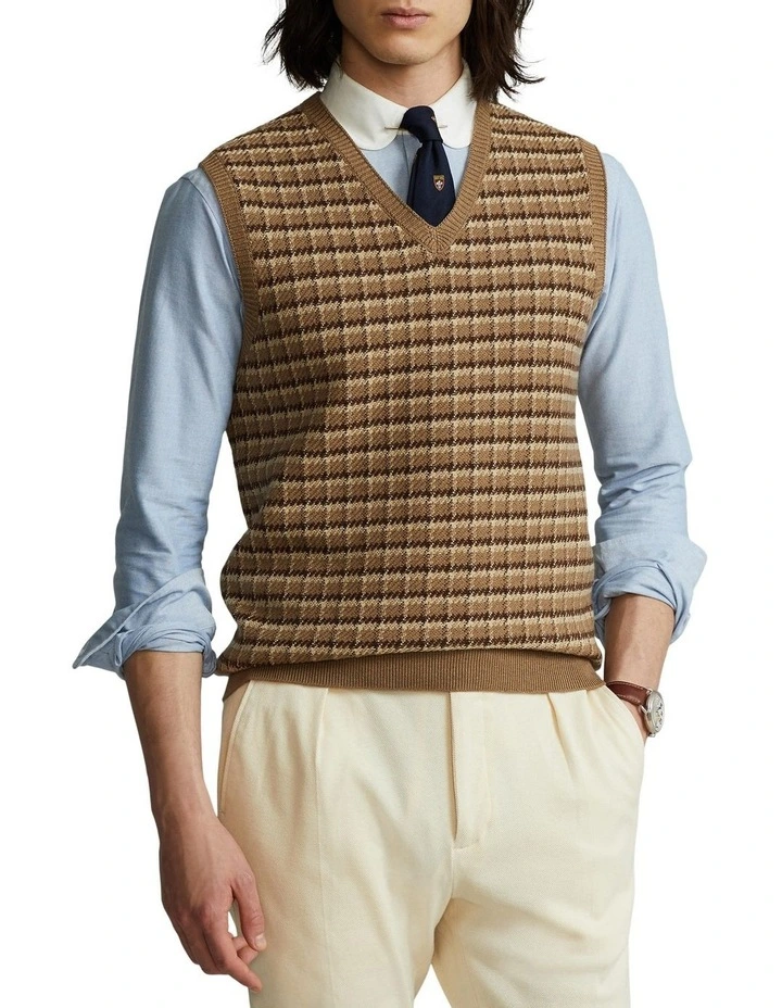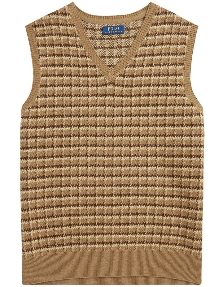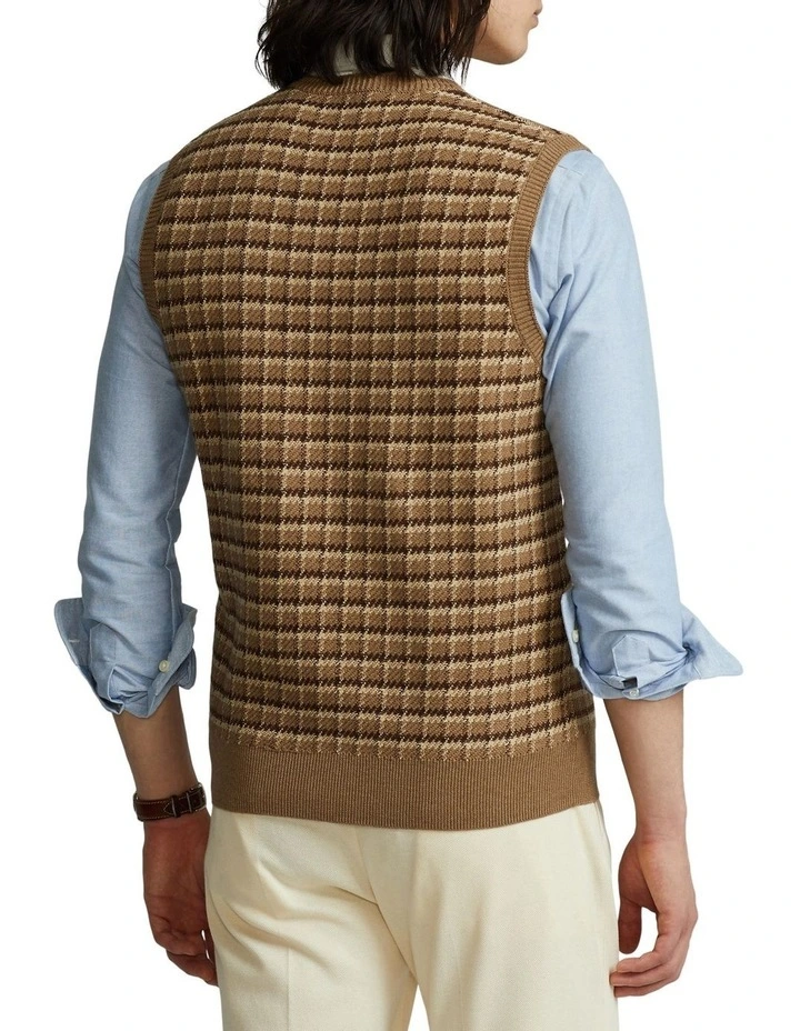This sweater vest unites a traditional checked pattern with a luxurious blend of cotton and cashmere.