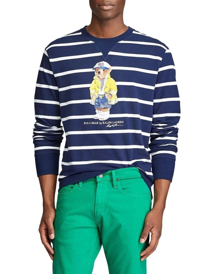 In our signature cotton mesh fabric, this long-sleeve T-shirt features the iconic Polo Bear sporting CP-93 gear from Ralph Lauren’s celebrated sailing-inspired collection of the early ’90s.Size medium has a 27″ body length (front and back), an 18″ shoulder, a 44″ chest, and a 35″ sleeve length. Sleeve length is taken from the center back of the neck and changes 1″ between sizes.Crewneck. Ribbed V-inset.Long sleeves with ribbed cuffs.Polo Bear, “Polo Bear by Ralph Lauren,” and “Ralph Lauren” script printed at the center front.Ribbed hem.Cotton.Machine washable.Imported.