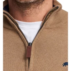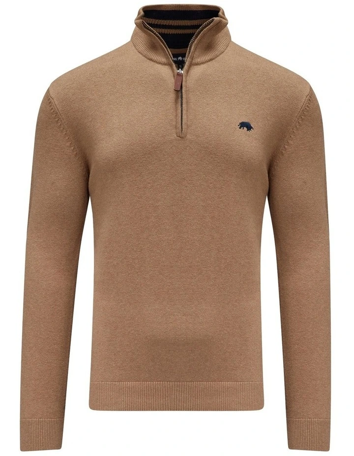 The Raging Bull quarter zip with added cashmere for luxurious softness and warmth is a classic for the cooler days. Embroidered with the iconic bull logo and detailed with leather zip pull.