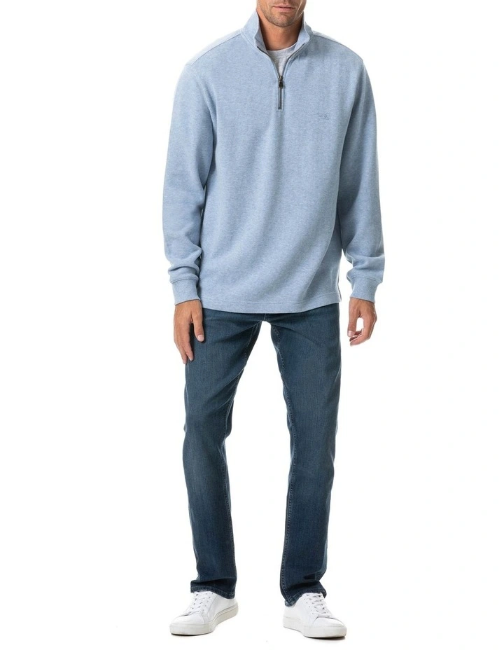 A mid weight mock neck sweat, in a cotton French rib. The fabric features a softly brushed surface for ultimate comfort and warmth. Simple and straight to the point, the breathable cotton fabric is an ideal trans-seasonal weight and makes layering easy.