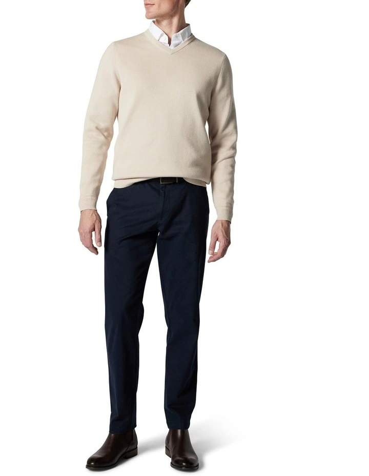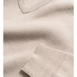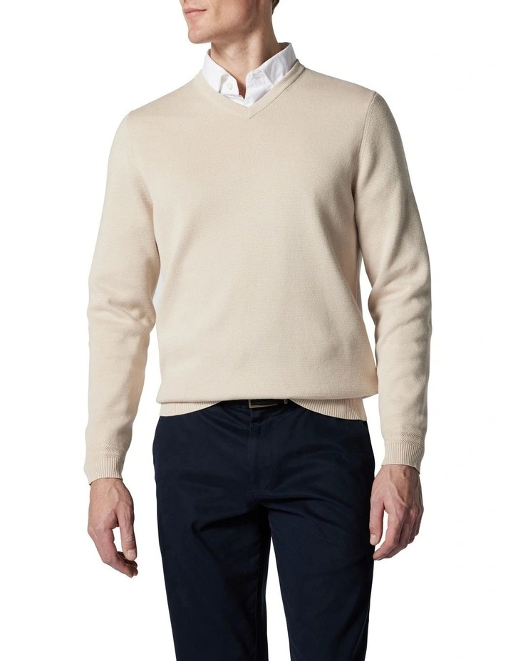 This classic V-neck knitwear top is crafted from the worlds finest Supima, high-quality long-staple cotton yarns with an ultra-smooth feel. Its expertly crafted in a trans-seasonal 12-gauge, ideal for layering and features a herringbone stripe at the cuff and waist rib edge for a sophisticated twist.