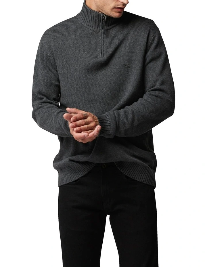 A quarter mock neck sweater, in a melange cotton. Combining the comfort and ease of cotton with a lightweight gauge ideal for layering over the colder months. Straightforward styling furthers versatility.