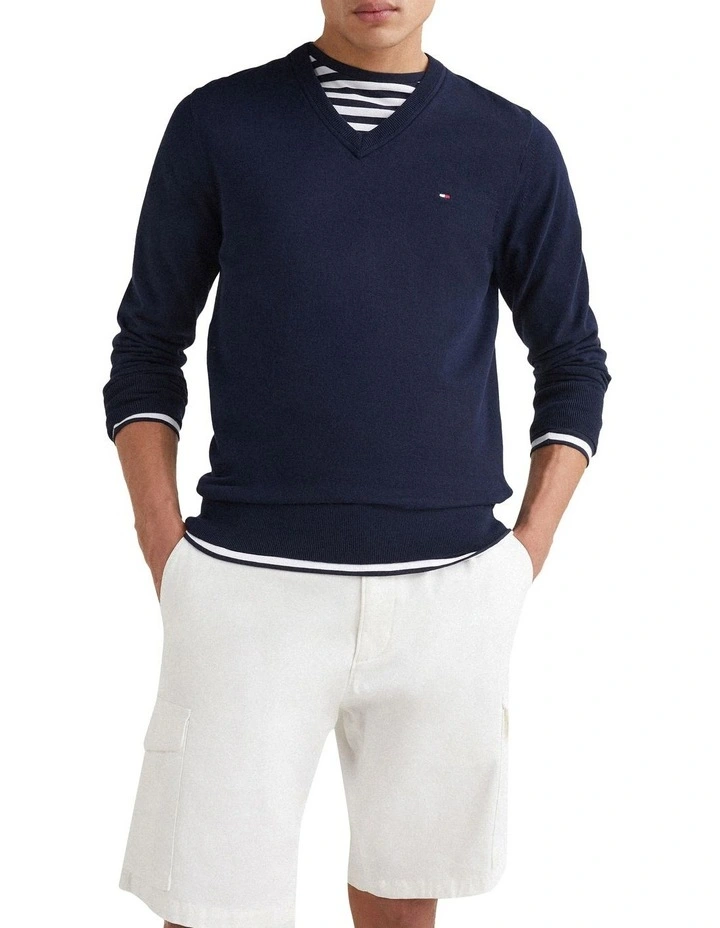 Tommy Hilfiger Flex technology adds a little stretch to this jumper, which has an understated design and a sophisticated V-neck.
